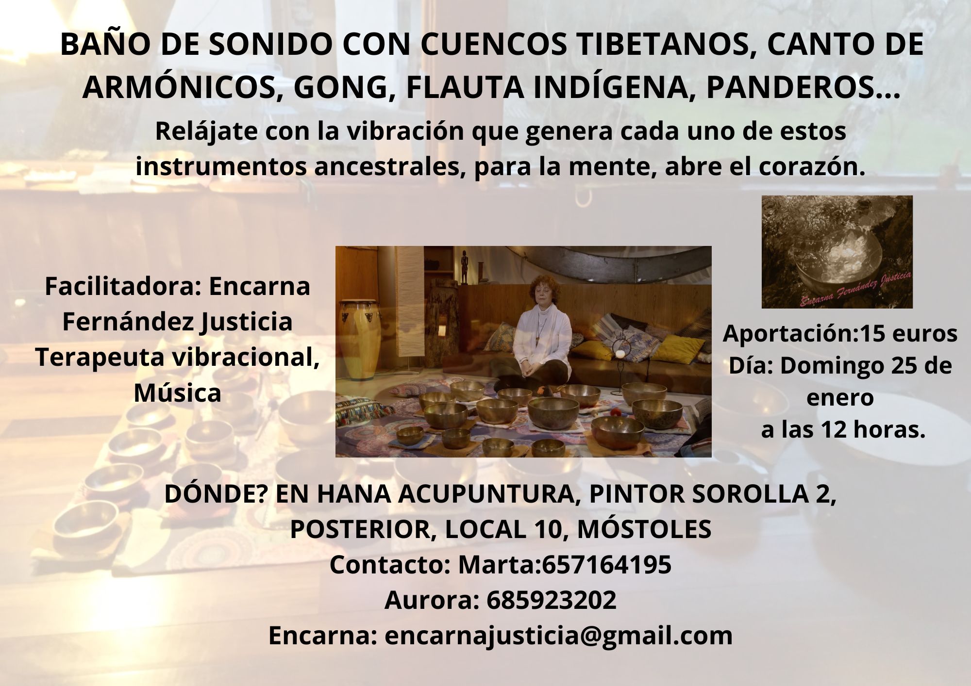 BAÑO DE SONIDO CON CUENCOS TIBETANOS, CANTO DE ARMÓNICOS, GONG, FLAUTA INDÍGENA, PANDEROS…