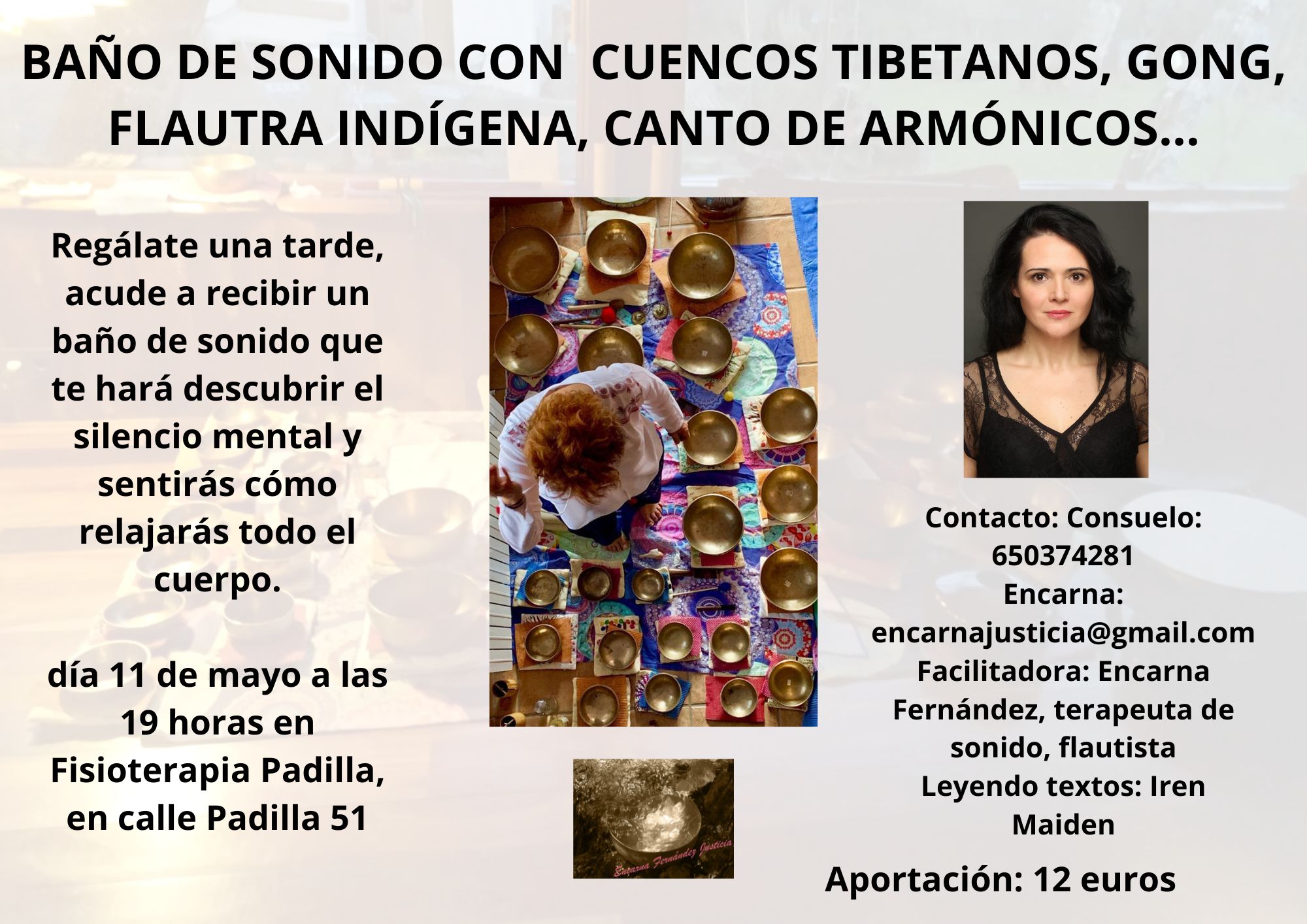 Regálate una tarde, acude a recibir un baño de sonido que te hará descubrir el silencio mental y sentirás cómo relajarás todo el cuerpo. La actriz Iren Maiden nos acompañará leyendo los textos.